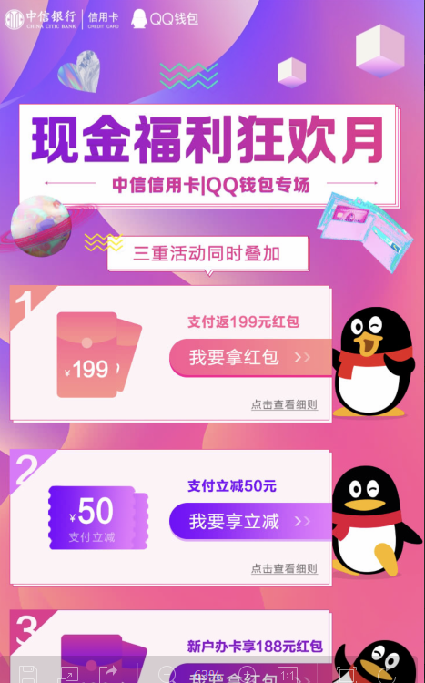 中信信用卡三重活动,可以直接在活动页面查看各项细则;