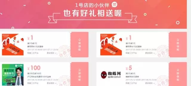 1号店赠送2张摩拜券
